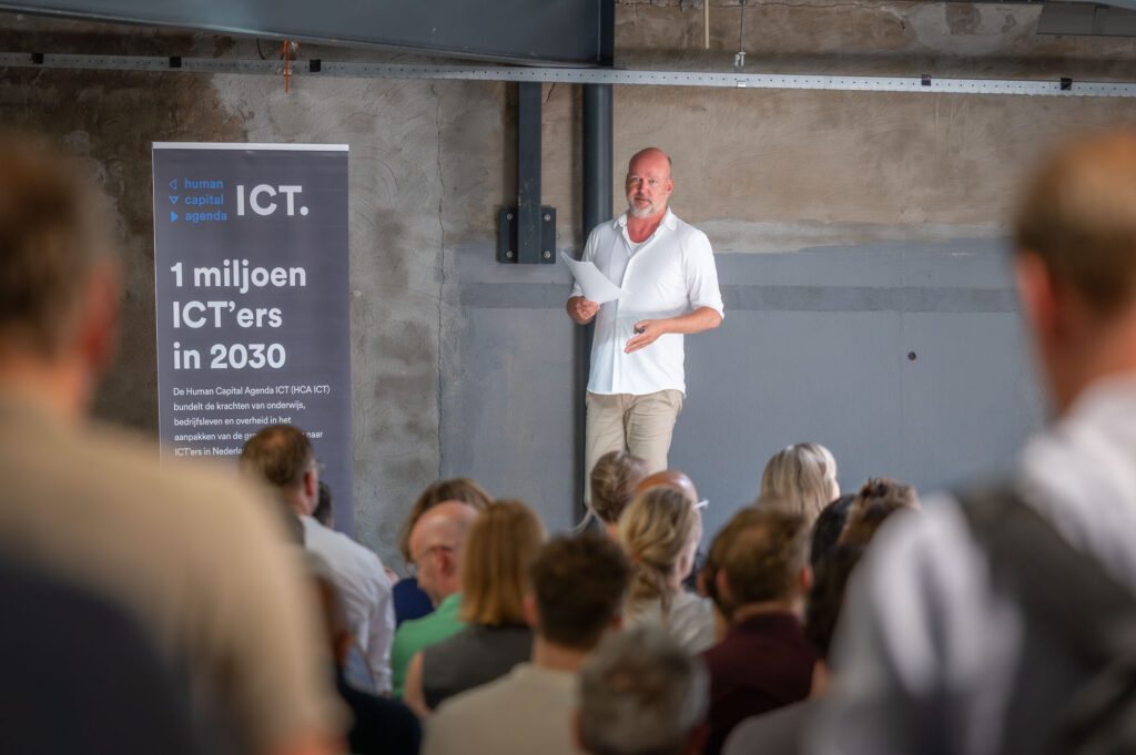 Terwijl de digitale vraag explodeert, daalt de aanwas van digitale professionals op mbo-niveau. Die paradox oplossen, is een taak van alle stakeholders. Gerbert Jan Valk laat daar dinsdag 1 juli geen misverstand over bestaan in zijn openingsverhaal tijdens het stakeholdersevent van HCA ICT en HCA Cybersecurity in de Expeditiezaal van De LiK, de voormalige gevangenis in Utrecht.